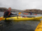 Over ved Tisler tok vi lunsj, å da kom regnet. Vi satt i god le og koset oss og pratet om padling :) Videre var tanken Heia, men vi var usikker på vindforhold. Tåken begynte å komme sigene og sikten var ikke like god lenger. Vi ble enige om å padle rundt Tisler for å sjekke forholdene på yttersiden og ta en vurdering da.