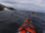 På yttersiden hadde vinden begynt å ta seg opp og sikten dertil , Heia var ikke lenger mulig å se og besluttningen ble tatt om at Heia fikk vente til en annen dag. Så da ventet 7 km med surfing tilbake. Jeg måtte hoppe på land å pakke om kajakken igjen for å få tyngde i rompa. Slet allerede med at vinden ville snu kajakken opp mot vinden, så bedre å bruke 5 min for å pakke om kajakken.